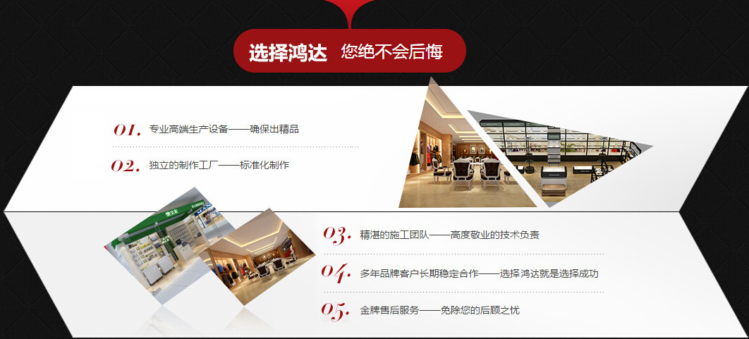 成都博鑫鴻達(dá)展柜有限公司成立于2016年,坐落于成都市新都區(qū)斑竹園鎮(zhèn)順江工業(yè)園區(qū),生產(chǎn)廠房占地面積50余畝,公司擁有員工10余名,公司獨立生產(chǎn)的產(chǎn)品有:展柜、倉儲貨架、庫房貨架、倉庫貨架、汽車4S貨架、超市貨架、賣場貨架、******鈦合金貨架、鈦合金旋轉(zhuǎn)柜、展柜展示柜、各種展架展示架、從事倉儲的研制、生產(chǎn)及銷售。